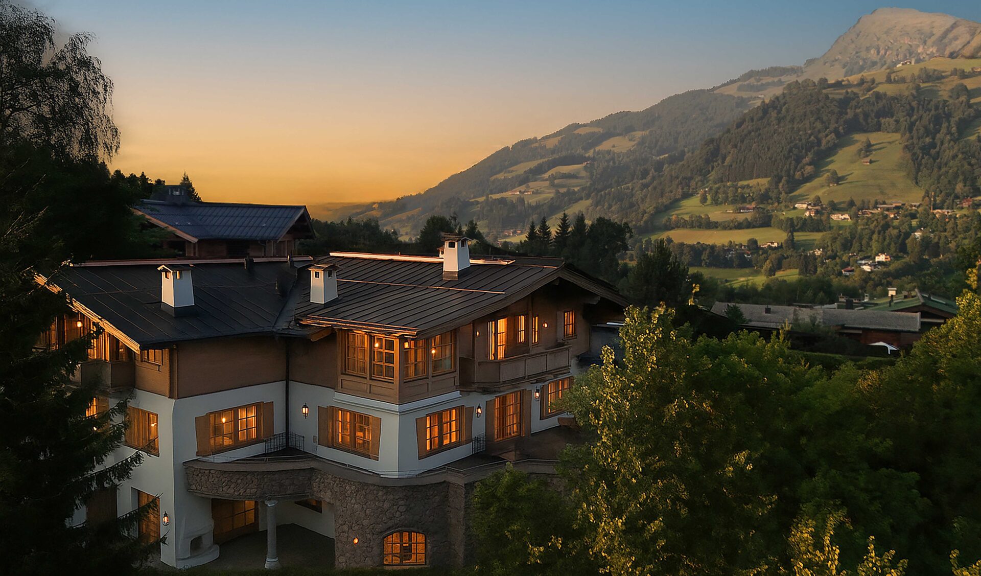Dieses außergewöhnliche Chalet thront in bester Lage am Lebenberg – dort, wo Kitzbühel von seiner ruhigsten, sonnigsten und zugleich eindrucksvollsten Seite erlebbar ist. Der Blick schweift weit über die weltberühmte Streif, den Hahnenkamm und die majestätischen Südberge bis hin zum Kitzbüheler Horn. Diese Kulisse ist nicht nur beeindruckend – sie wird jeden Tag aufs Neue zum Erlebnis. Das Chalet verkörpert den Charme eines Tiroler Landhauses auf höchstem Niveau.