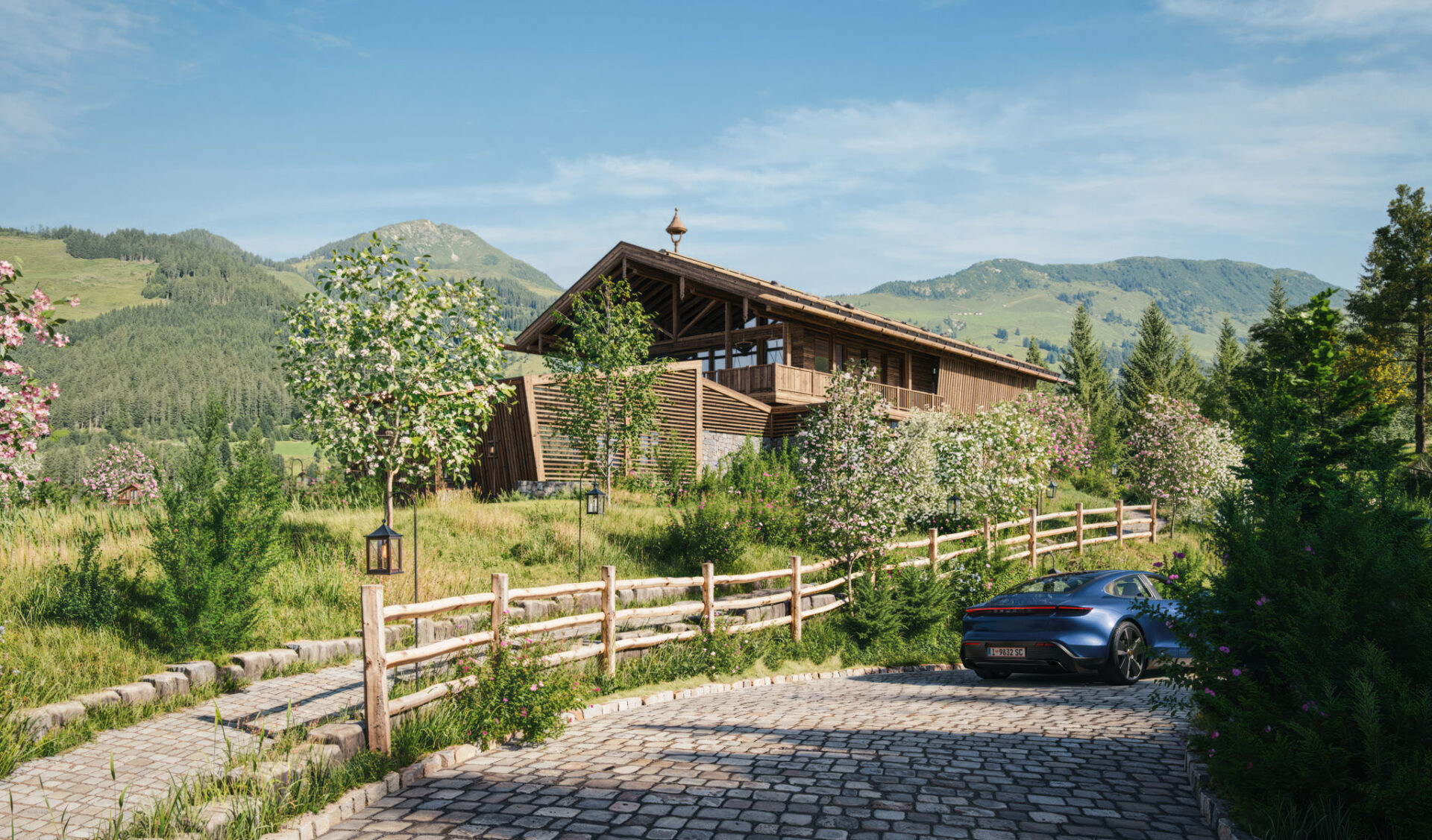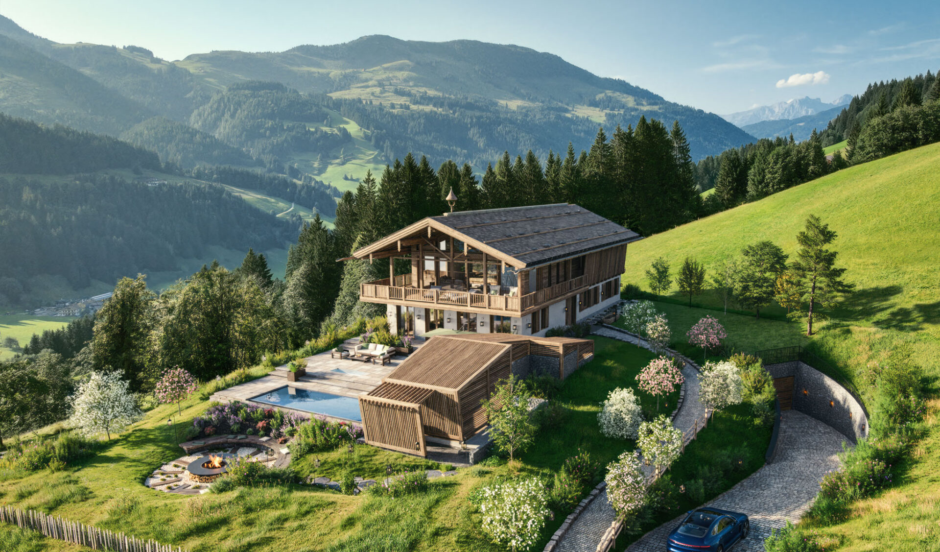 In idyllischer Alleinlage zwischen Kirchberg und Aschau präsentiert sich dieses sonnige Grundstück mit traumhaftem Panoramablick auf die Kitzbüheler Alpen. Absolute Ruhe, ganztägige Sonne und die umliegenden Almen verleihen der Liegenschaft ein unvergleichliches Gefühl von Privatsphäre und Exklusivität. Die genehmigte Planung sieht eine Gesamtnutzfläche von rund 764 m² vor und verbindet alpine Architektur mit modernem Wohnkomfort.