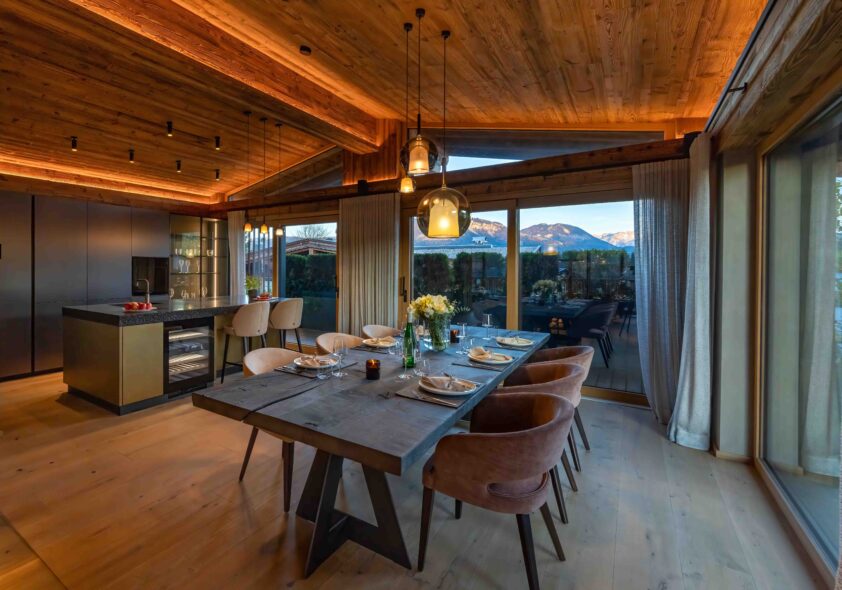 Hochwertige, naturbelassene Materialien fügen sich harmonisch in das edle Ambiente ein und unterstreichen den exklusiven Charakter dieses einzigartigen Domizils. Hier genießen Sie das Beste aus zwei Welten: eine zentrale Lage im Herzen von Kitzbühel und dennoch absolute Ruhe.