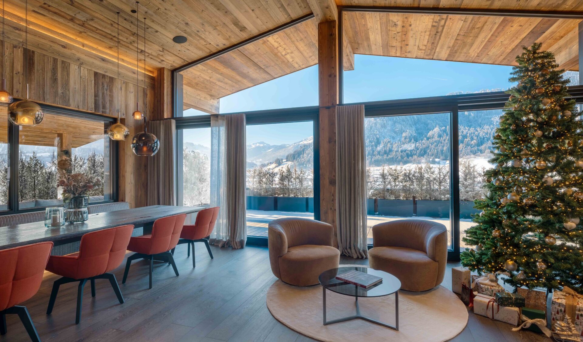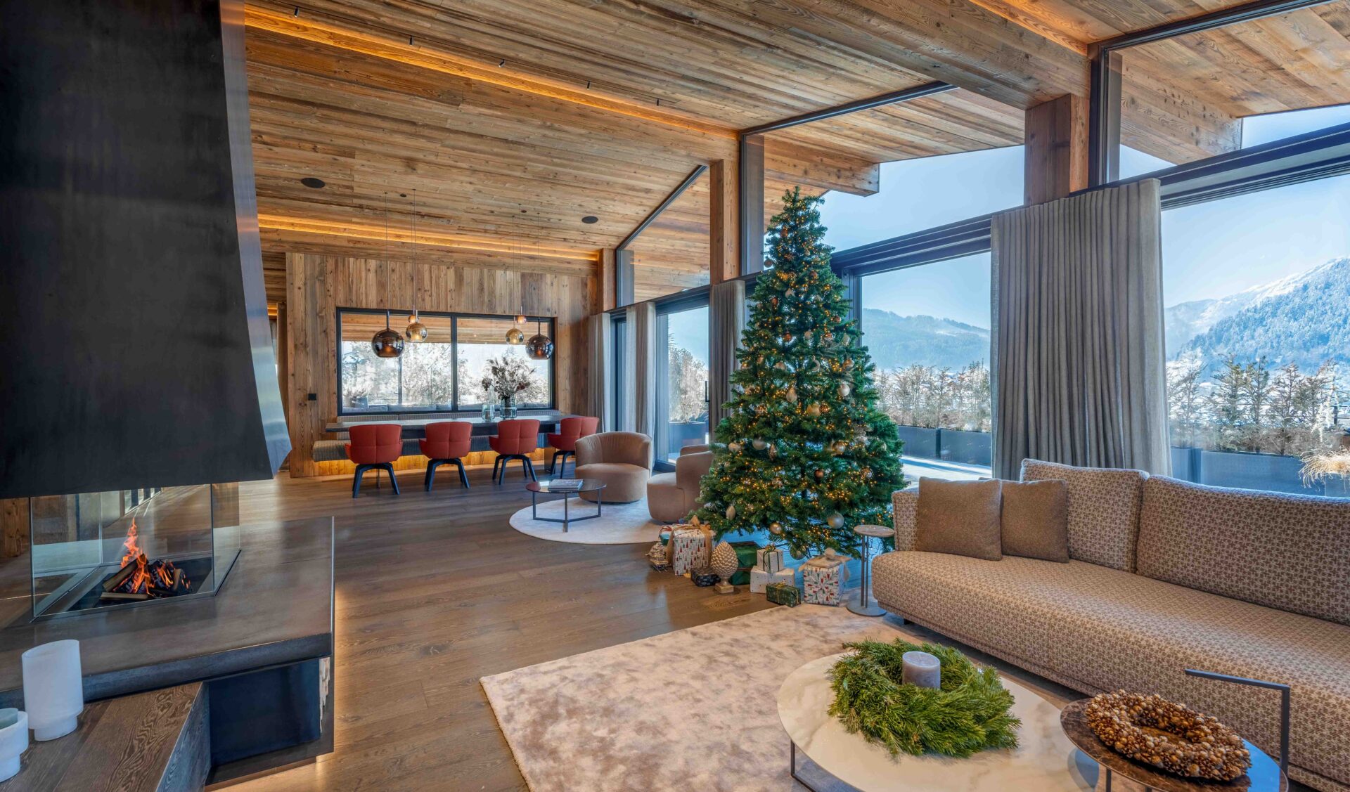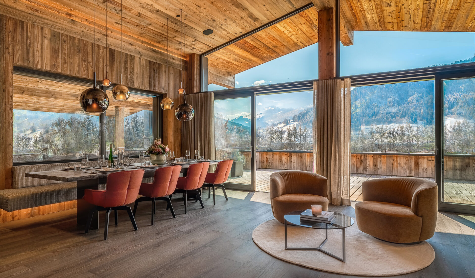 Die exklusive Küche mit separater Vorbereitungsküche erweitert sich durch den direkten Zugang zur Sonnenterrasse mit Lounge-Bereich. Vier elegante Schlafzimmer mit Badezimmer en suite, eine stilvolle Weinlounge und ein Heimkino bieten höchsten Wohnkomfort. Der beeindruckende Wellnessbereich begeistert mit einem 10,5 m langen Edelstahl-Pool, Sauna und Relax-Zone. Dieses Chalet vereint architektonische Perfektion mit alpinem Lebensgefühl.