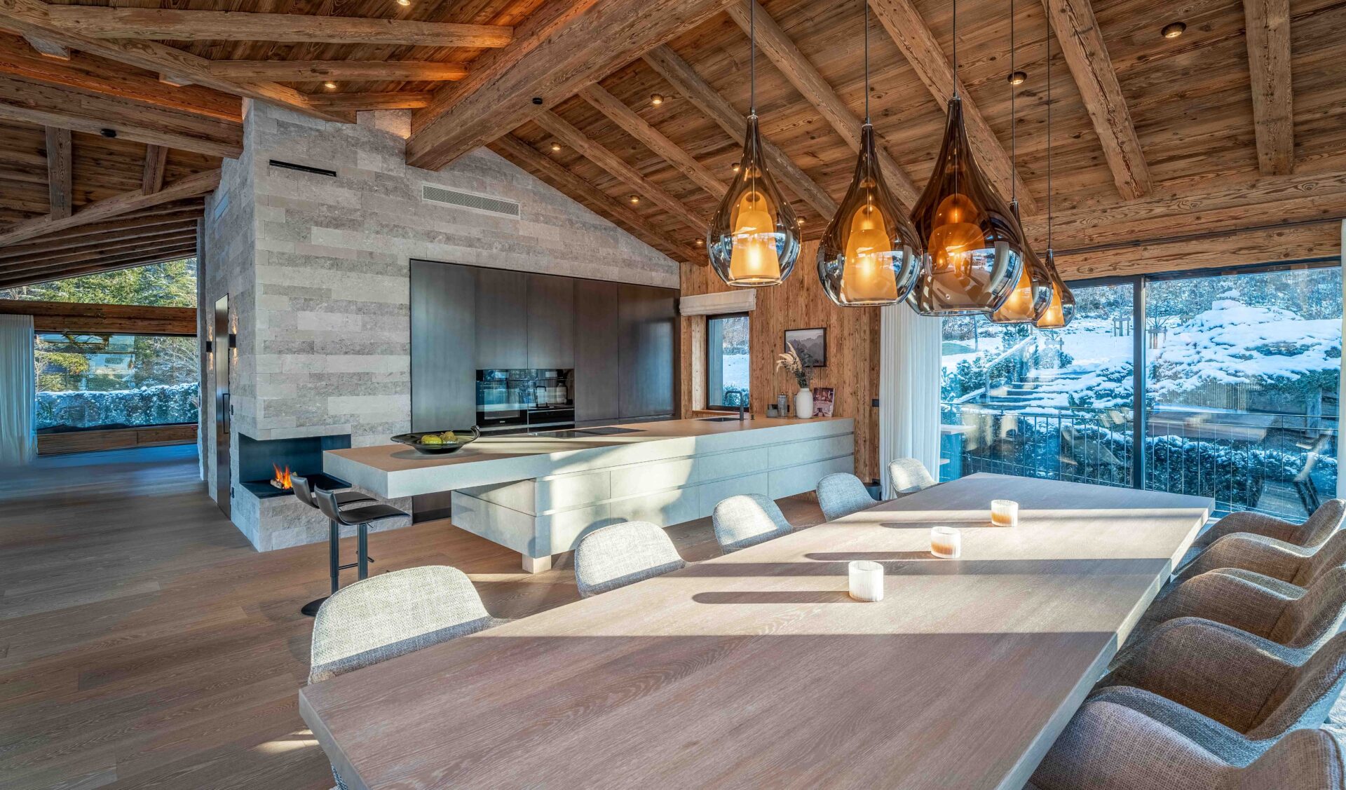 Bodentiefe, nach Südwesten ausgerichtete Fenster durchfluten die Räume mit Tageslicht und eröffnen eine atemberaubende Aussicht auf die umliegende Bergwelt. Ein exquisiter Wellnessbereich mit Indoor-Pool, Dampfbad und Sauna bietet pure Entspannung und lädt zum Verweilen ein. Ergänzt wird das luxuriöse Angebot durch ein hochmodernes Fitnessstudio, das keine Wünsche offen lässt.