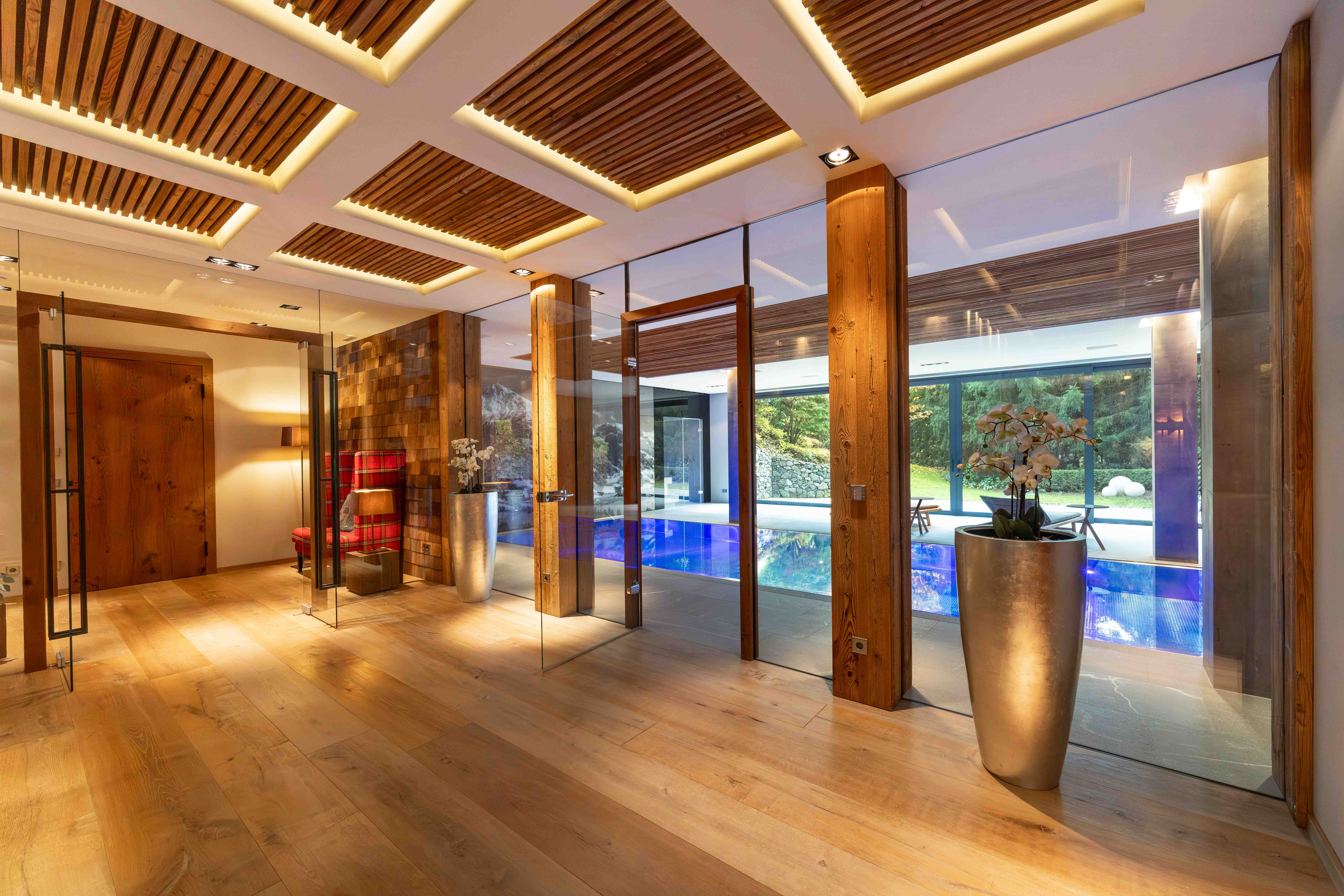 Dieses außergewöhnliche Chalet präsentiert sich als wahres Refugium für allerhöchste Wohnansprüche. Auf einer beeindruckenden Wohnfläche von ca. 550 m² vereint diese exklusive Liegenschaft alpine Gemütlichkeit mit modernem Luxus und bietet ein Wohnambiente auf Topniveau. Die anspruchsvolle Architektur spiegelt sich im gesamten Interior-Design wider und sorgt auf drei Ebenen für ein harmonisches Zusammenspiel von Ästhetik, Funktionalität und Eleganz. Bodentiefe Panoramafenster eröffnen in alle Richtungen atemberaubende Ausblicke auf die umliegende, unverbaute Naturkulisse und die imposante Bergwelt.