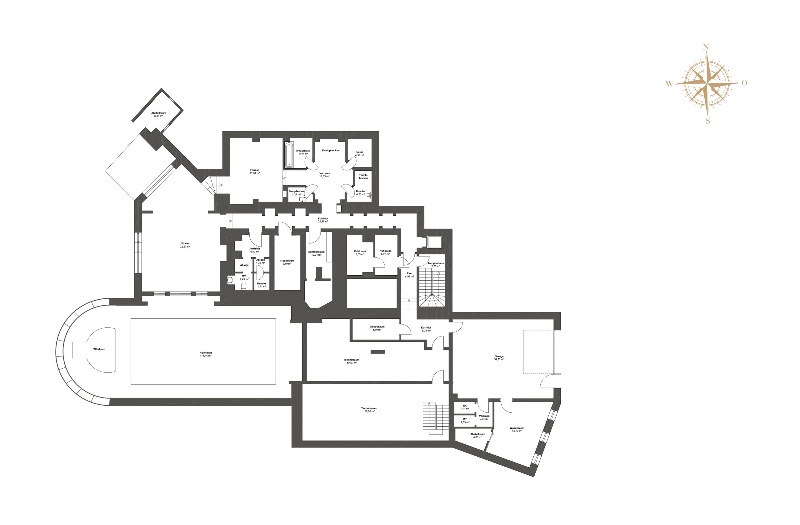 • Wohn-Nutzfläche Villa: 1.864,27 m2 (inkl. Garage für 2 PKW)