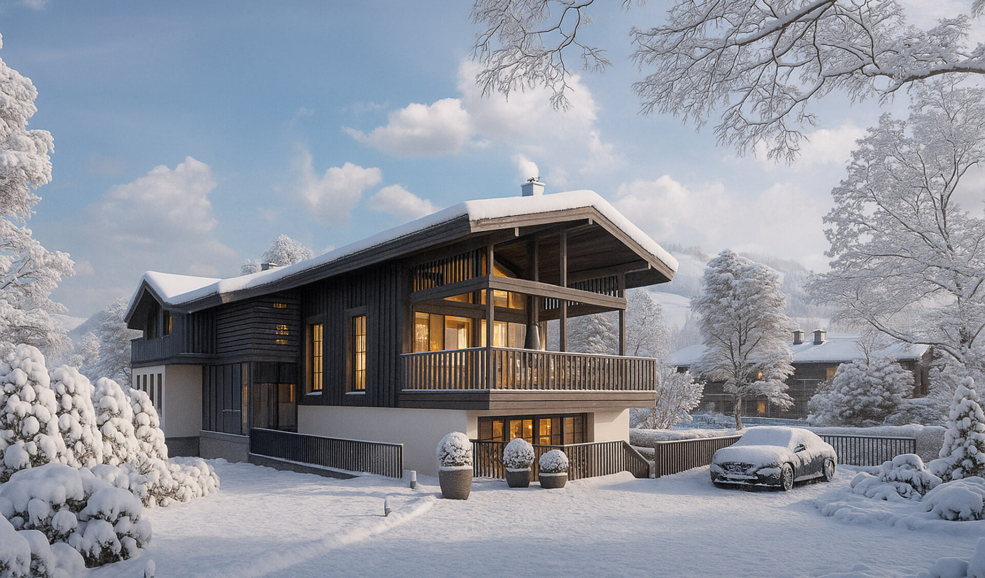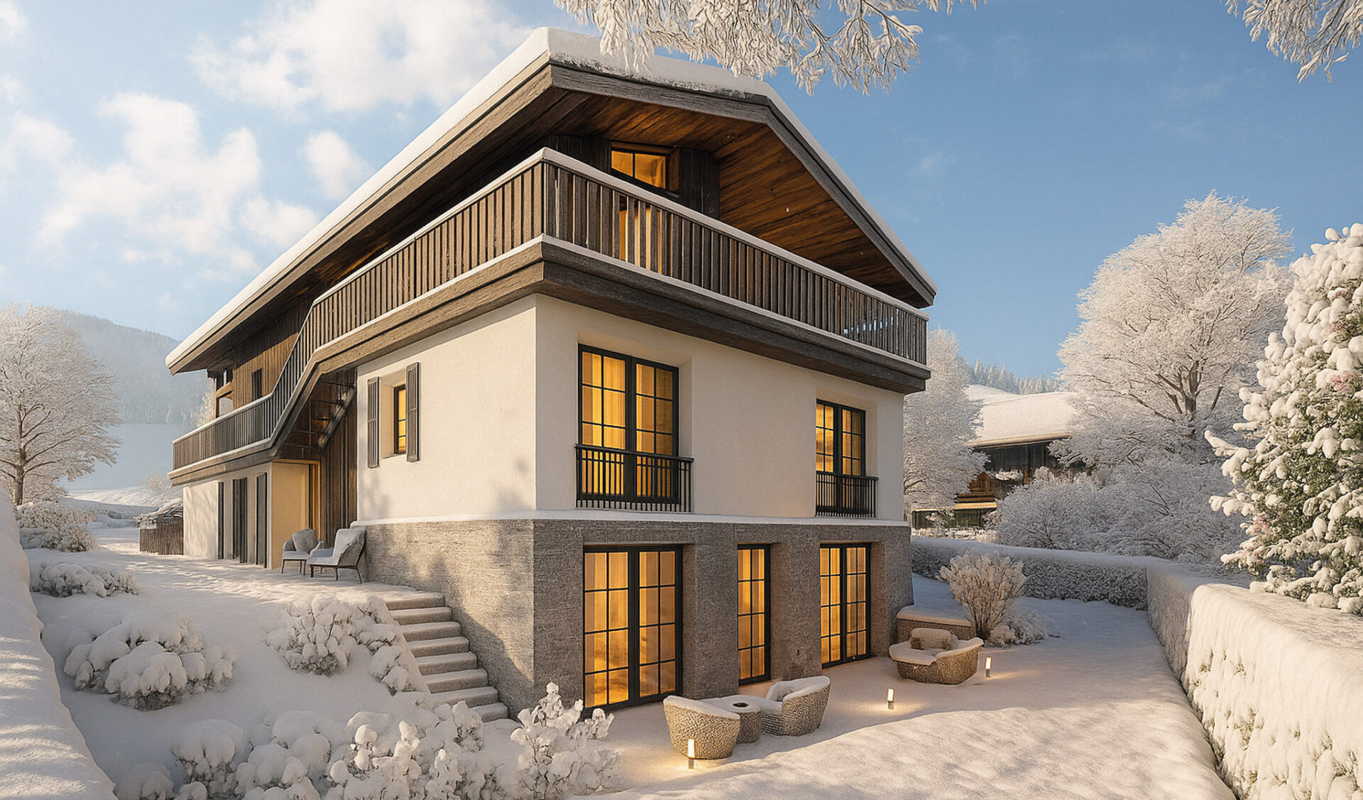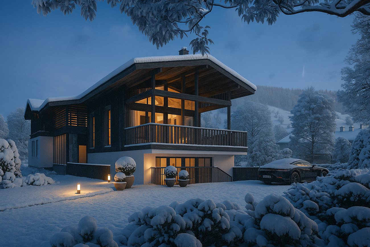 Die Lage des großzügigen Grundstücks mit ausreichend Grünfläche bietet einen atemberaubenden Ausblick auf den Hahnenkamm mit seiner legendären Streif-Abfahrt.