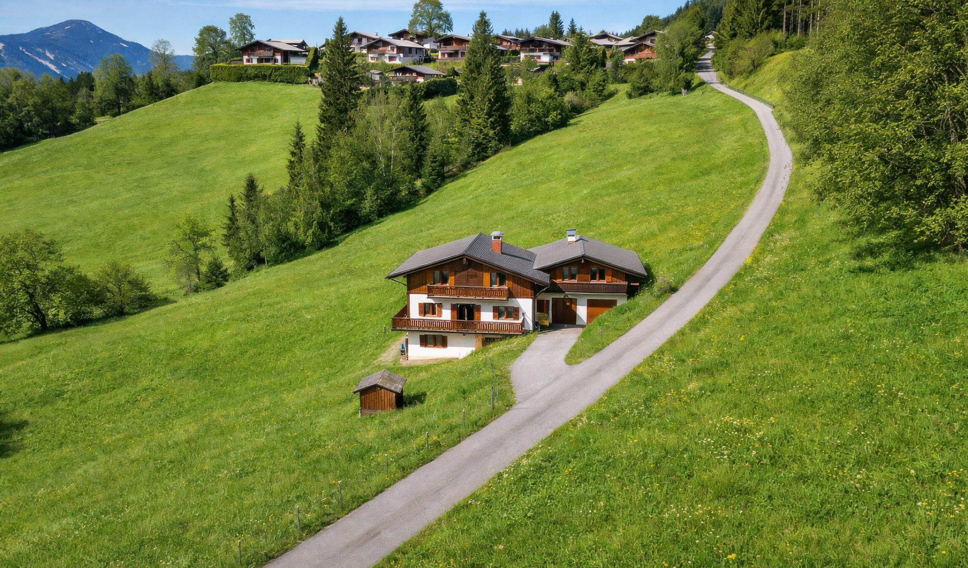 Situated in one of Kitzbühel's most sought-after residential areas, in a privileged, secluded location on the renowned Bichlalm, this exceptional property is a veritable refuge for the most discerning tastes. The property is perched on a sunny hillside, surrounded exclusively by undeveloped land and with no neighboring buildings, offering all-day sunshine and impressive views of the nearby mountains.