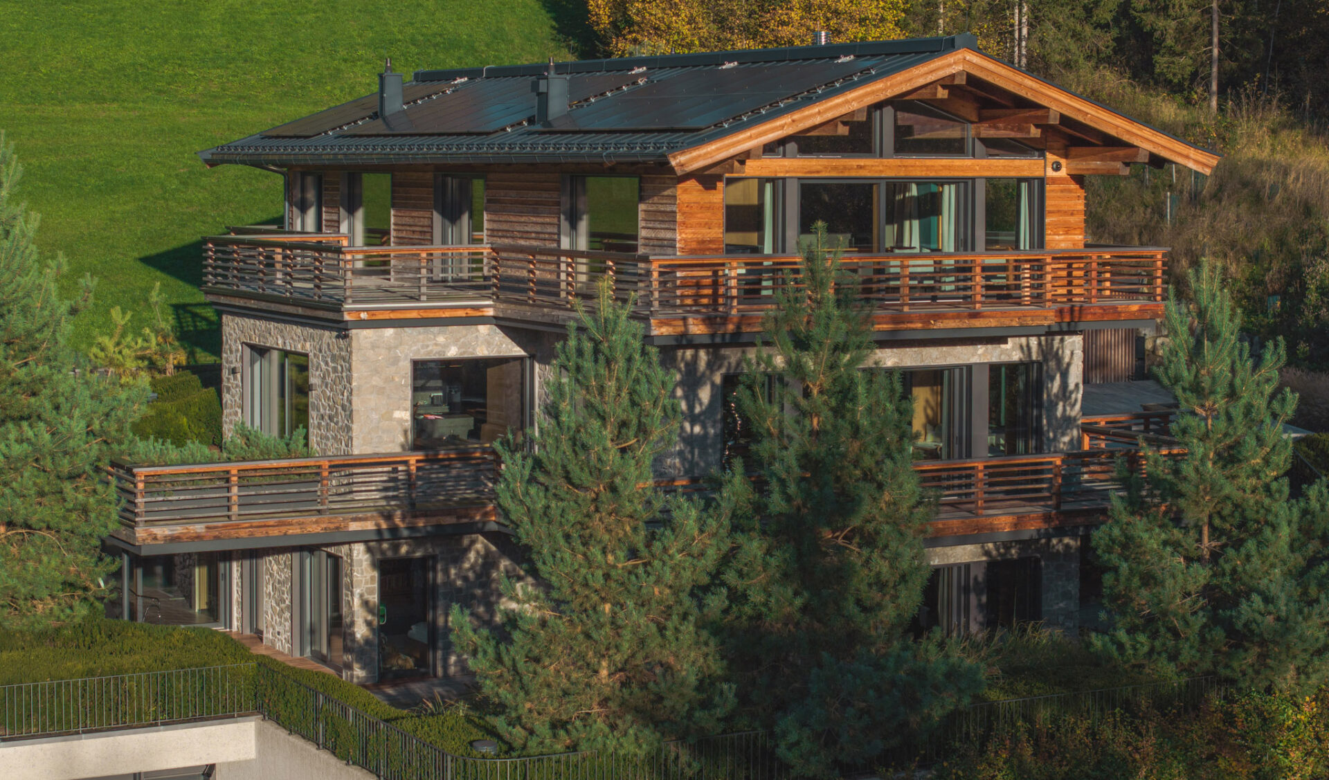 This extraordinary luxury chalet is situated on the sunny Sonnberg in Kitzbühel, just a few minutes' walk from the charming town center. It's a masterpiece of Alpine architecture and modern living. On a 980 m² plot, the chalet offers unrivaled panoramic views of the Hahnenkamm, the Wilder Kaiser, and the legendary “Gamsstadt” (chamois town) – a sight that never fails to inspire.