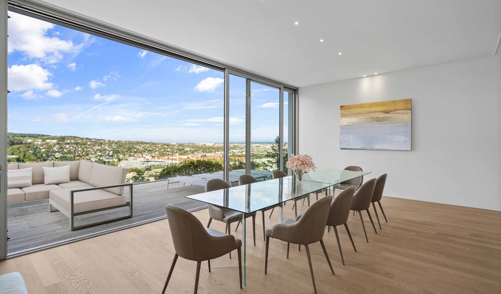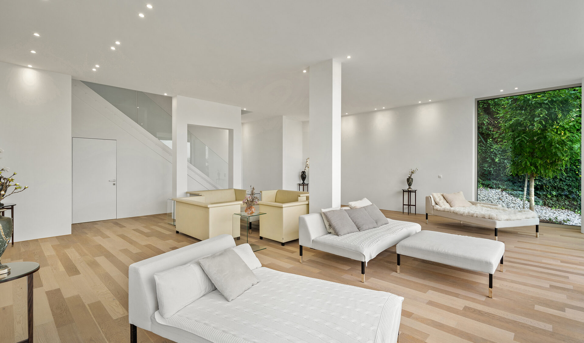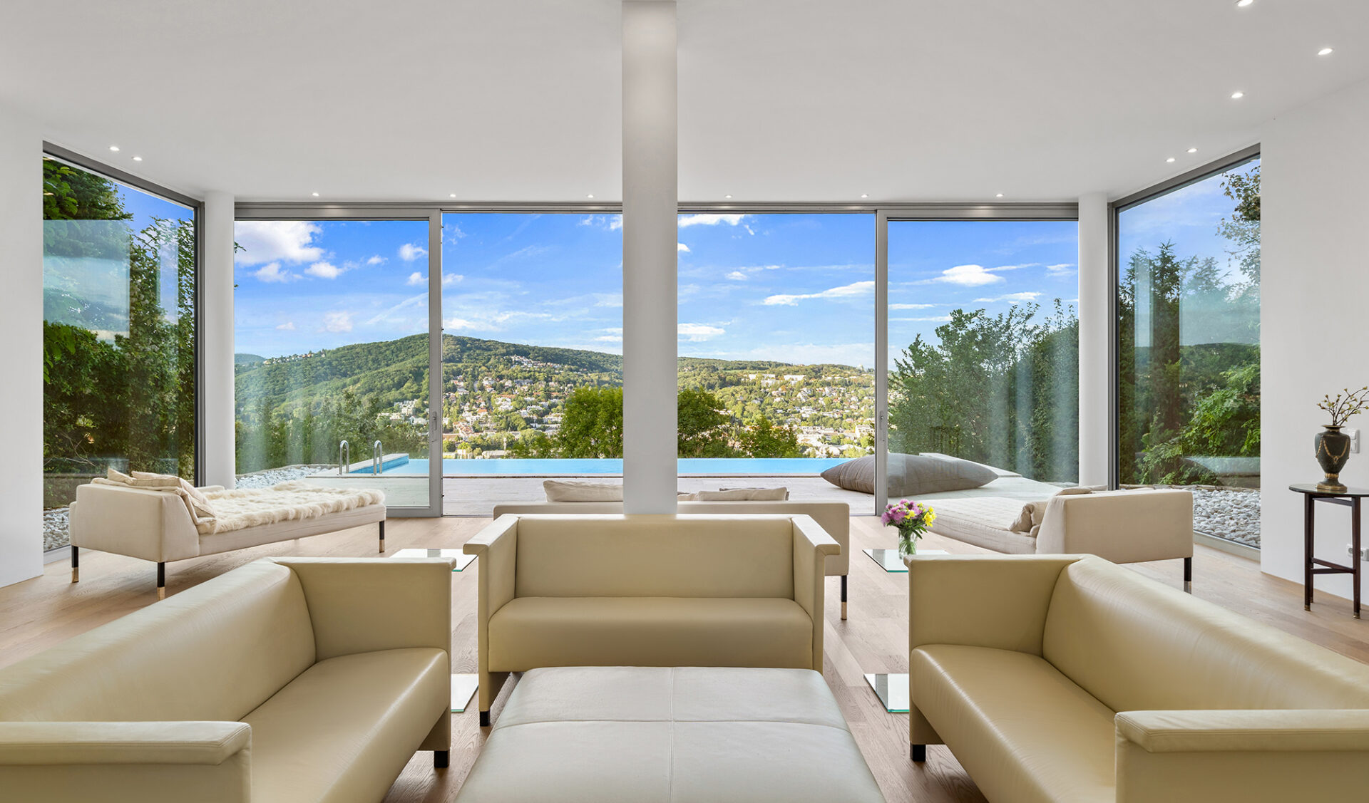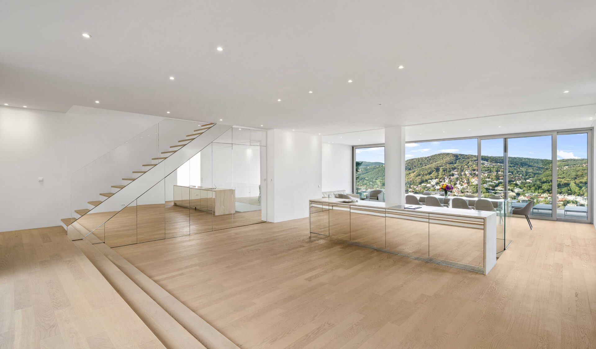 This unique four-story villa combines modern architecture with the highest level of residential comfort in one of Vienna's most beautiful locations. Its hillside position offers an incomparable panoramic view of the entire city – a sight that never fails to impress.